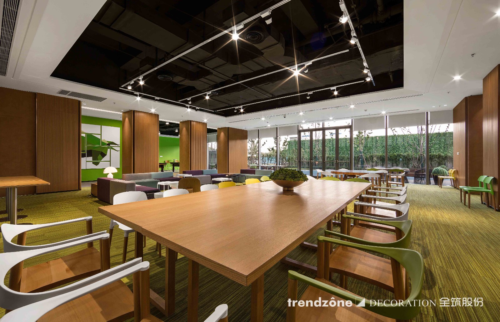 筑摰科技以 “以人為本 / 合作共贏 / 靈活多變” 為核心,為來伊份打造總面積達 6260 ㎡的 “都市自然樂園”,以垂直綠植、可循環(huán)環(huán)保材料、節(jié)能照明系統(tǒng),模塊化家具等為基底,勾勒出森系空間的松弛感。以長期主義視角規(guī)劃空間功能,涵蓋接待大廳、社交中心、會議培訓中心、運營中心、總裁辦公室、企業(yè)會所及 8 個常規(guī)辦公區(qū)。能隨企業(yè)發(fā)展持續(xù)優(yōu)化,最終成為展現(xiàn)來伊份企業(yè)文化特質、賦能員工成長的理想載體。