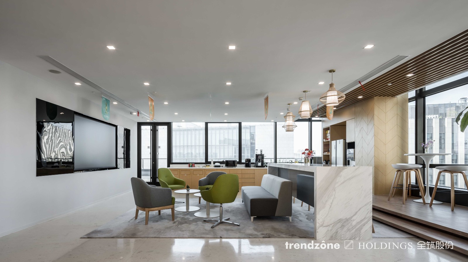筑摰科技以 “以人為本 / 合作共贏 / 靈活多變” 為核心,為來(lái)伊份打造總面積達(dá) 6260 ㎡的 “都市自然樂(lè)園”,以垂直綠植、可循環(huán)環(huán)保材料、節(jié)能照明系統(tǒng),模塊化家具等為基底,勾勒出森系空間的松弛感。以長(zhǎng)期主義視角規(guī)劃空間功能,涵蓋接待大廳、社交中心、會(huì)議培訓(xùn)中心、運(yùn)營(yíng)中心、總裁辦公室、企業(yè)會(huì)所及 8 個(gè)常規(guī)辦公區(qū)。能隨企業(yè)發(fā)展持續(xù)優(yōu)化,最終成為展現(xiàn)來(lái)伊份企業(yè)文化特質(zhì)、賦能員工成長(zhǎng)的理想載體。